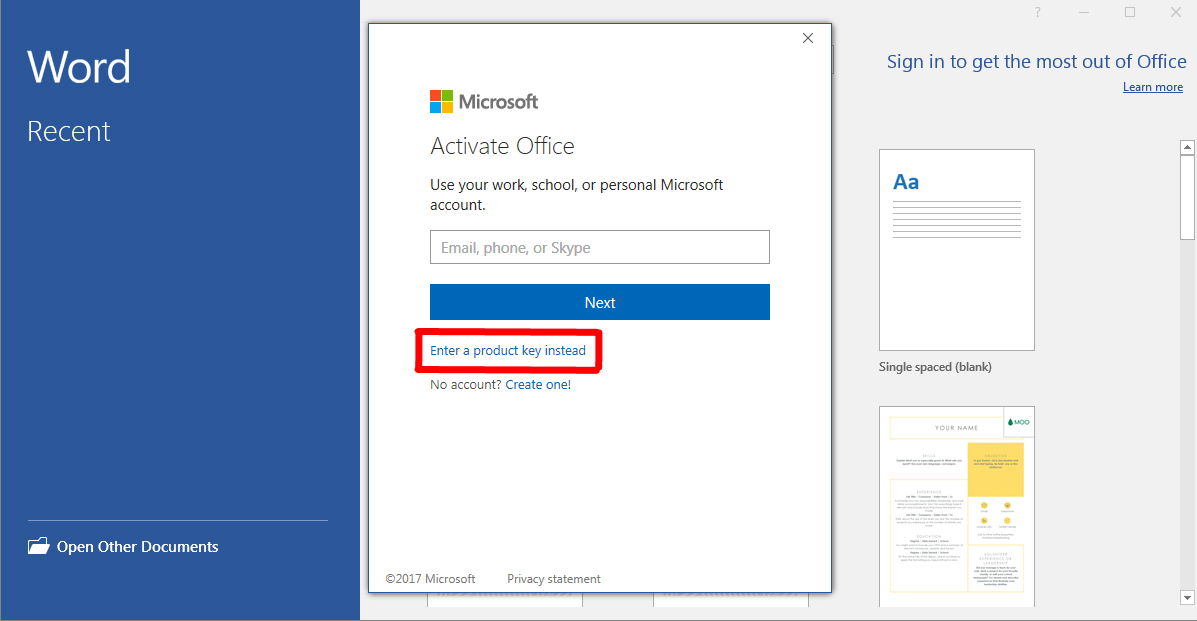 After installation, to Activate your copy of Microsoft Office 2010 Professional you simply open the MS word. A popup will appear asking Activate Office. Click on Enter a product key instead.
