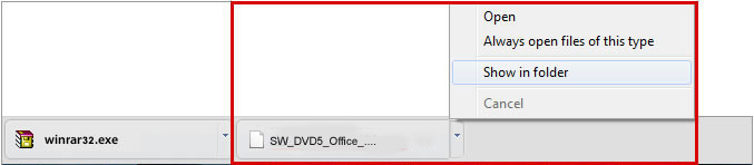 The first step to install Office 2010 Pro is to locate where the file was downloaded to. To open the folder where Office is downloaded to click on the Drop Down Arrow beside the