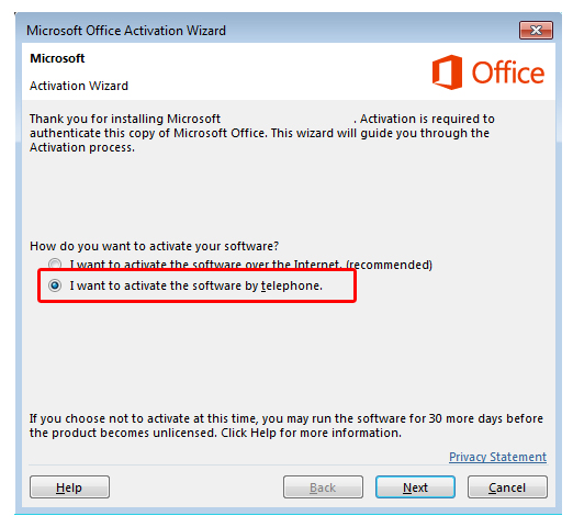 Step 1: Occasionally you have to activate Microsoft Office via phone. This is a simple process that only takes a few minutes.