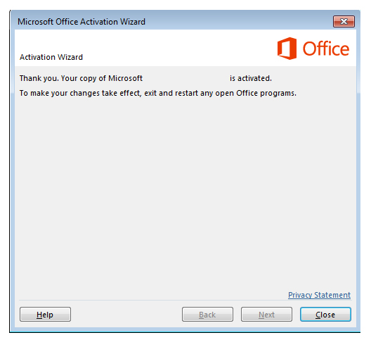 Office installation is now complete. Simply just click CLOSE and in the following steps we will take you through on how to activate the software.